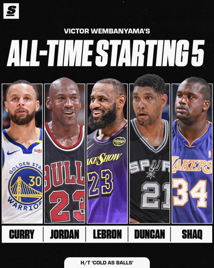 Năm cầu thủ xuất sắc nhất lịch sử? Wenbanyama: Jordan, James, Curry, O Neal, Duncan