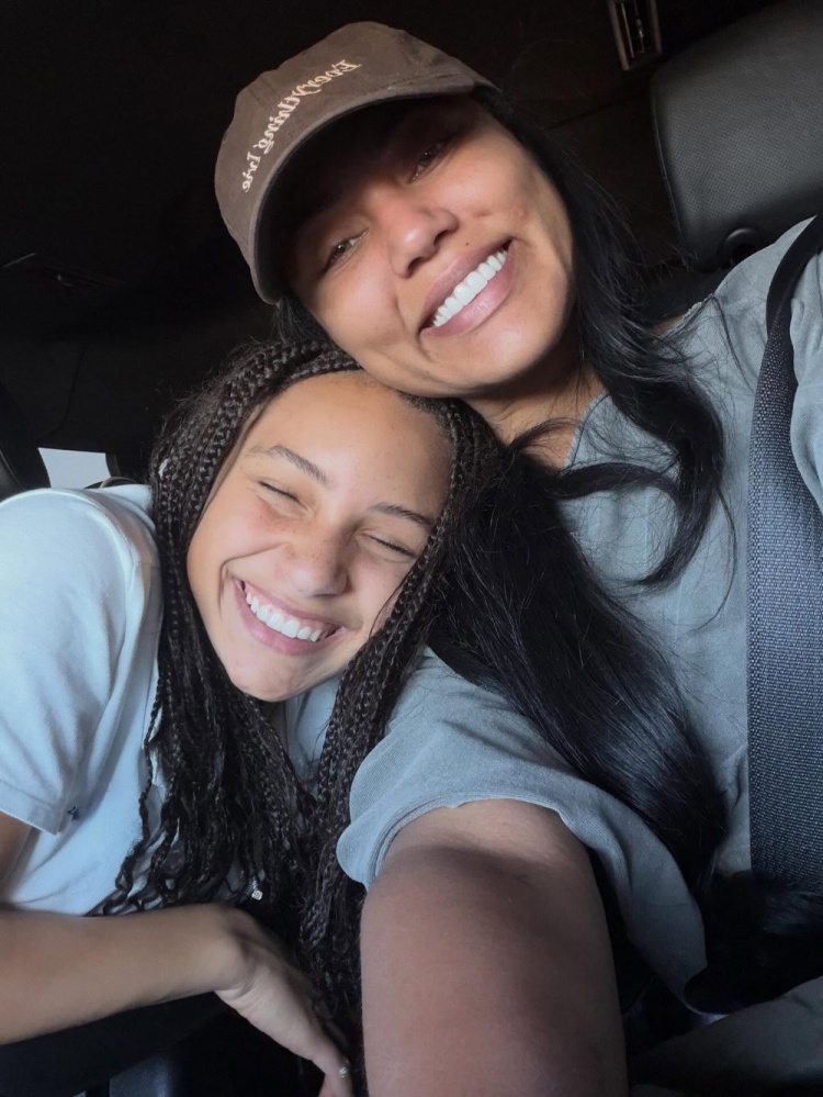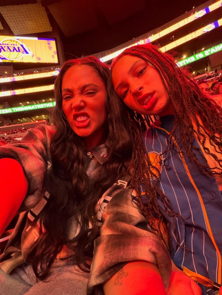 Hôm nay, Ayesha, vợ của ngôi sao Warriors Curry, đã đăng những bức ảnh chụp cô và con gái lớn đang xem trận đấu.