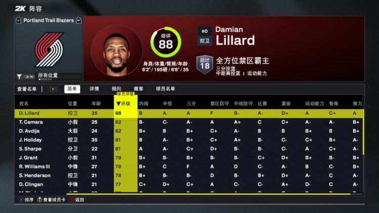 2K26 Trail Blazer Giá trị khả năng: Yang Hansen 70! 88 kỳ nghỉ 88 cao nhất của Lillard
