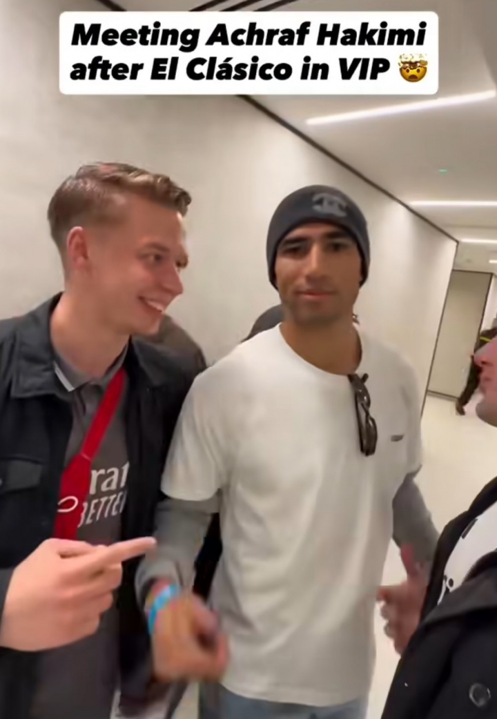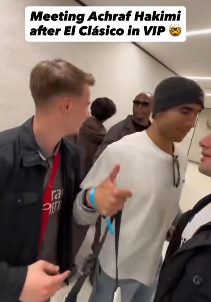 Sau trận đấu, một người hâm mộ đã đăng một bức ảnh, nói rằng anh ấy đã gặp Achraf trong khu VIP ở Bernabeu và chụp ảnh nhóm.
