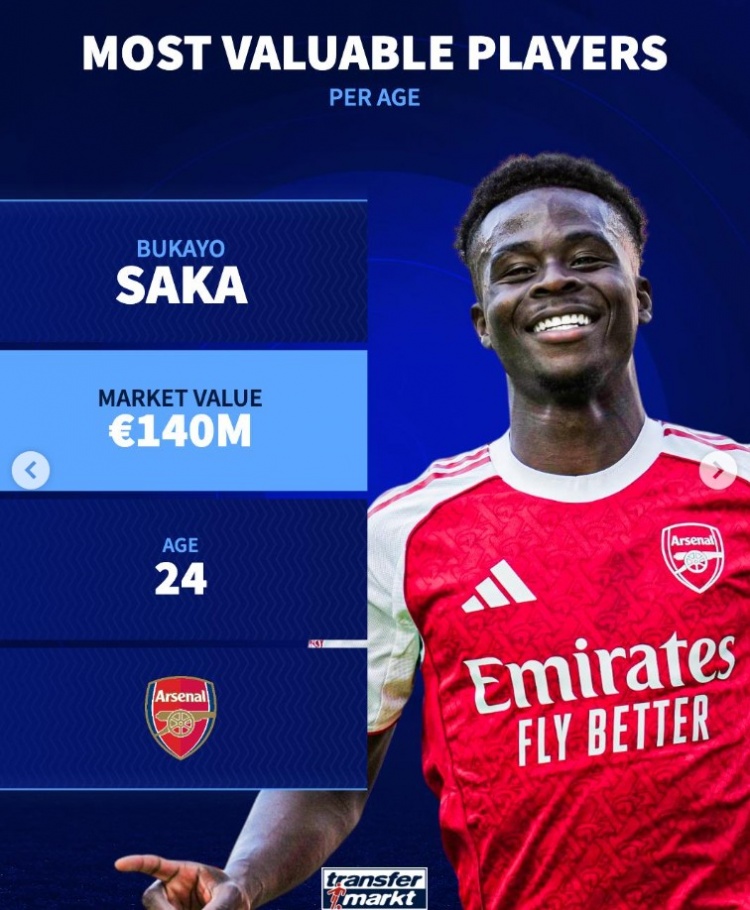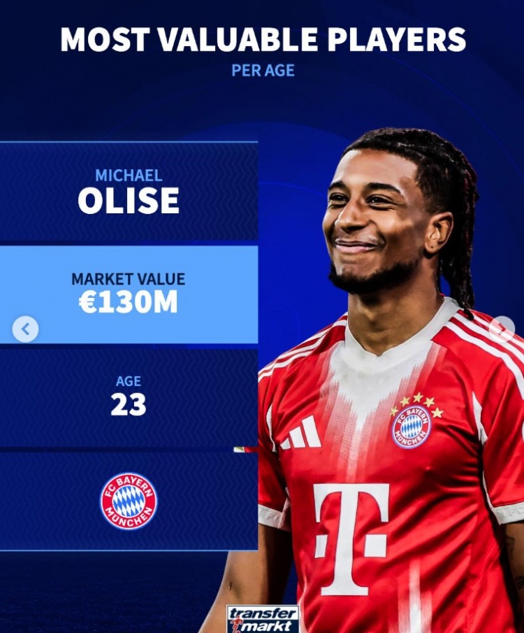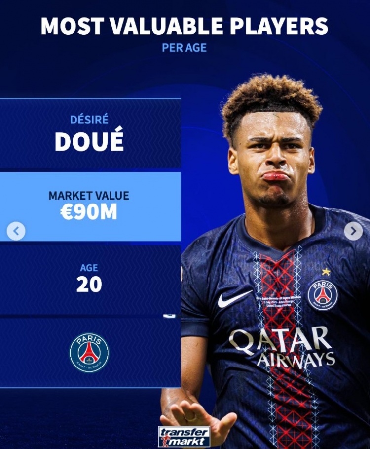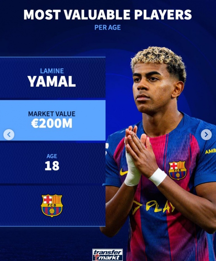 "Thị trường chuyển nhượng" đã tính toán giá trị tài sản ròng cao nhất của từng nhóm tuổi từ 16 đến 25 và Yamal, 18 tuổi, đứng đầu danh sách với 200 triệu euro.