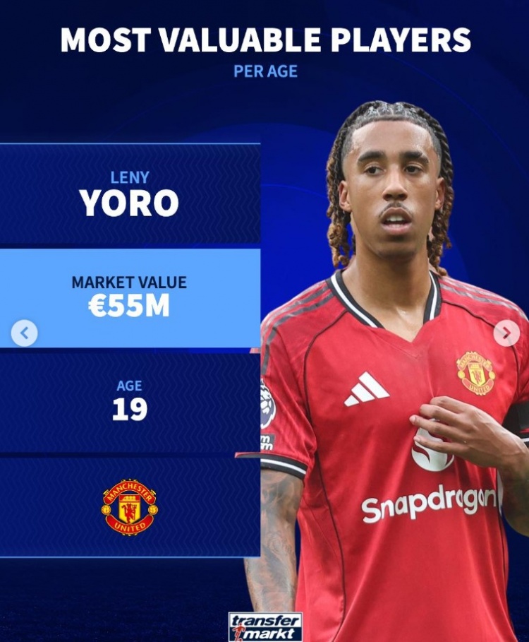 19 tuổi: Yoro (Manchester United), 55 triệu