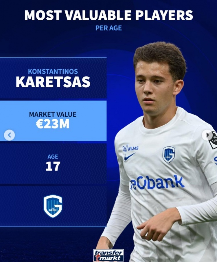17 tuổi: Constantinos Caresas (Genk), 23 triệu
