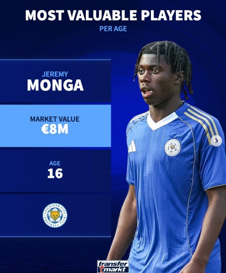 16 tuổi: Jeremy Monga (Leicester City), 8 triệu