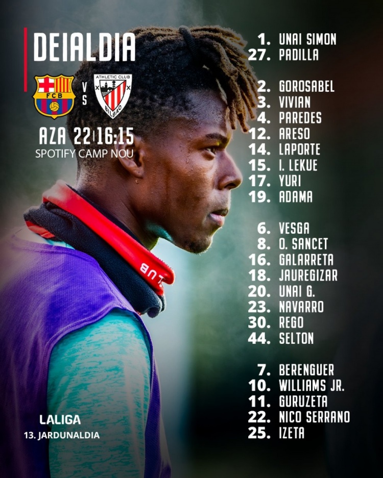 Trước và sau khi gia hạn hợp đồng, Bilbao đã công khai chỉ trích Barcelona, và mối quan hệ giữa hai câu lạc bộ rất căng thẳng. Bây giờ có vẻ như họ vẫn chưa quên quá khứ, khi mạng xã hội của Bilbao chọn sử dụng ảnh của Nico để công bố đội hình cho chuyến làm khách đến Camp Nou.